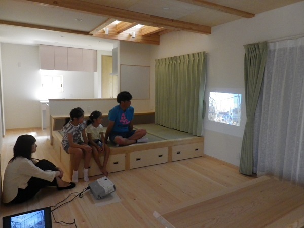 こだわりの小上がりや、すべすべとした桧に座ってご鑑賞いただきました。